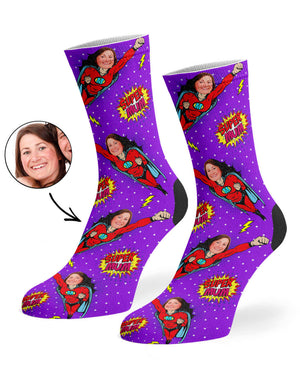 Alle sokken worden persoonlijk ontworpen door onze professionele team van designers. Het enige wat jij hoeft te doen is een foto op te sturen en onze designers maken de sokken met je hoofd erop.